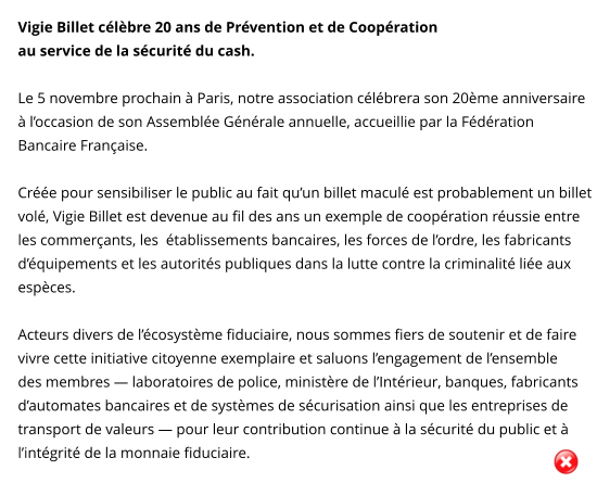 Vigie Billet célèbre 20 ans de Prévention et de Coopération au service de la sécurité du cash...